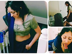 Young indian girl in saree is blackmailed to give her grandfather a blowjob
