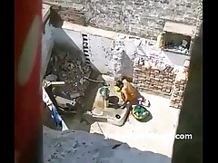 Newly married indian wife outdoor shower - indianhiddencams.com